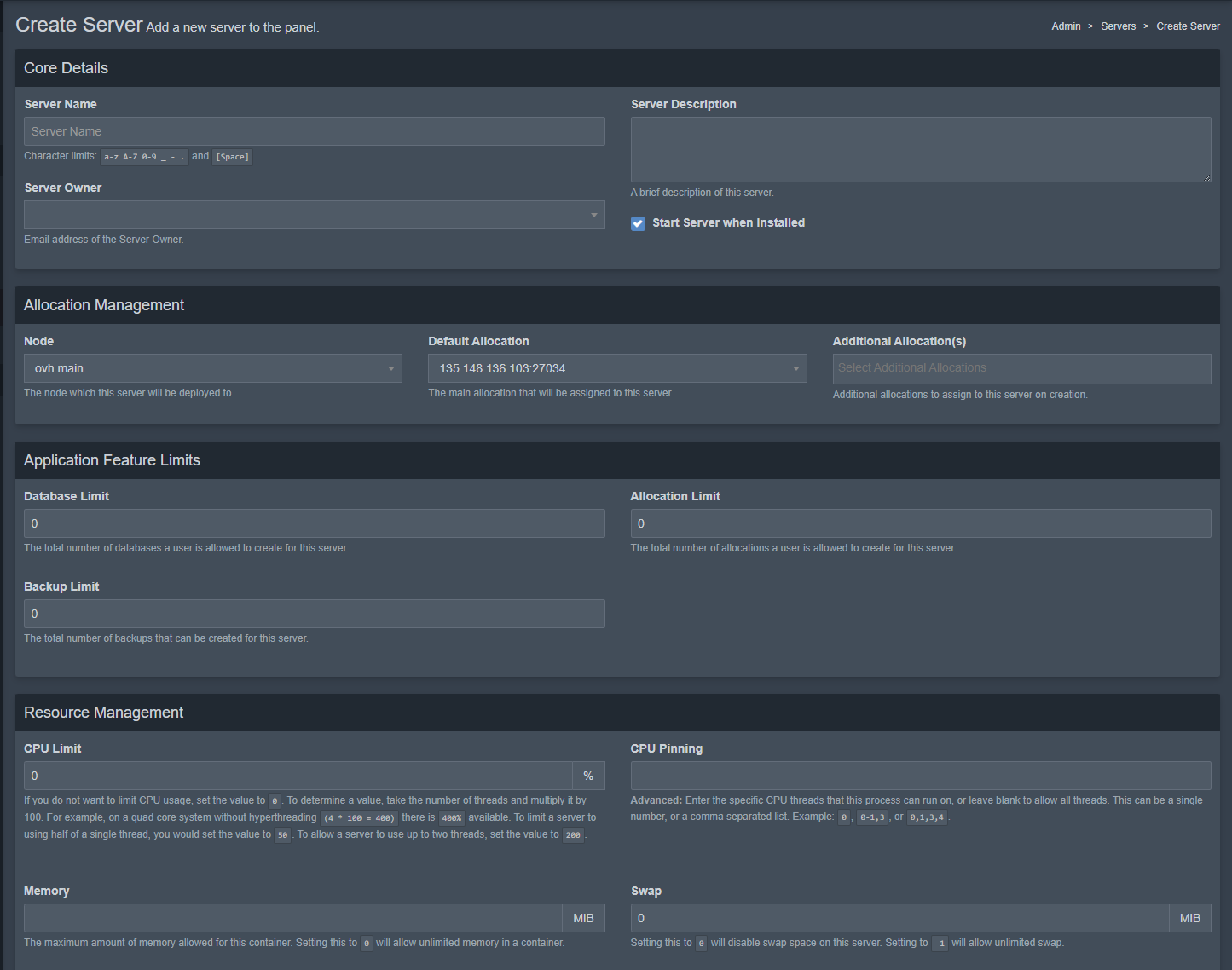 | 00:31, 6 October 2025 | Pterodactyl portion of create server form.png (file) | 98 KB | Sirdog (talk | contribs) | Screenshot of the Pterodactyl panel interface Category:Systems management files | 1 | |