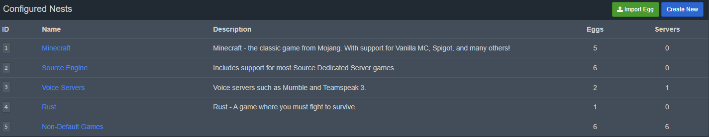| 23:33, 5 October 2025 | Pterodactyl list of nests.png (file) | 28 KB | Sirdog (talk | contribs) | Screenshot of the Pterodactyl panel interface | 1 | |