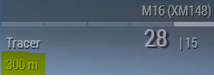 All firearms have an effective range. The range of your firearm is shown above your stamina bar (see above image). The range indicates that when you aim with a scope or iron-sight, not accounting for factors such as wind, the bullet is expected to reach that range at the middle of your crosshair before being affected by bullet drop.